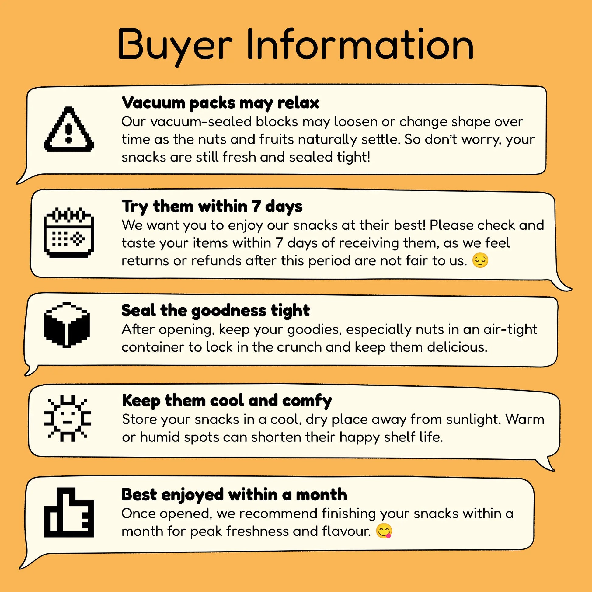 The baked versions are prepared in Malaysia. Baking enhances their crunch and intensifies their flavour, making them an excellent and energizing snack.